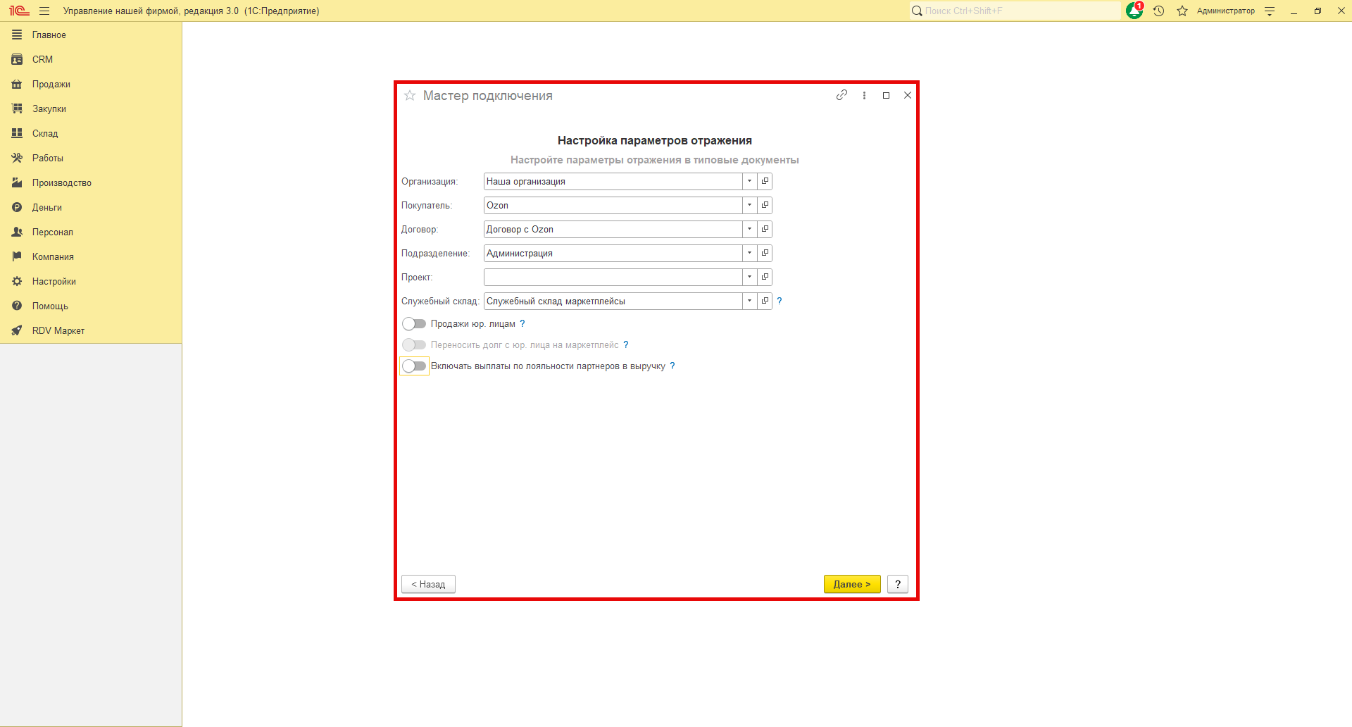 Настройка личного кабинета в RDV Маркет