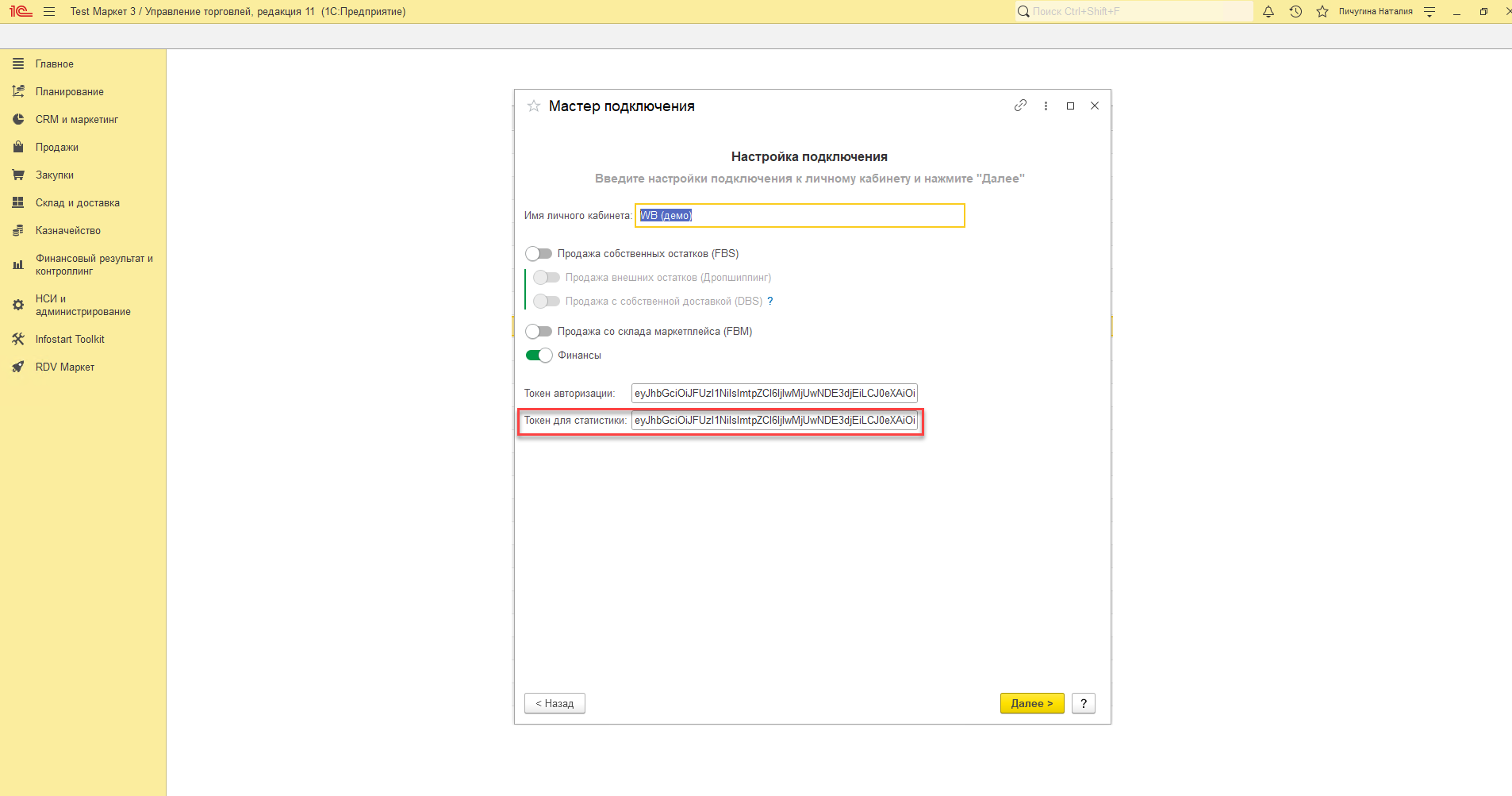 Настройка личного кабинета в RDV Маркет