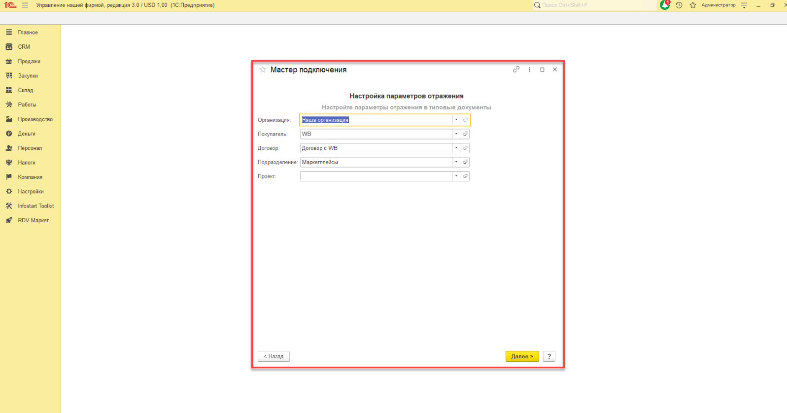 Настройка личного кабинета в RDV Маркет