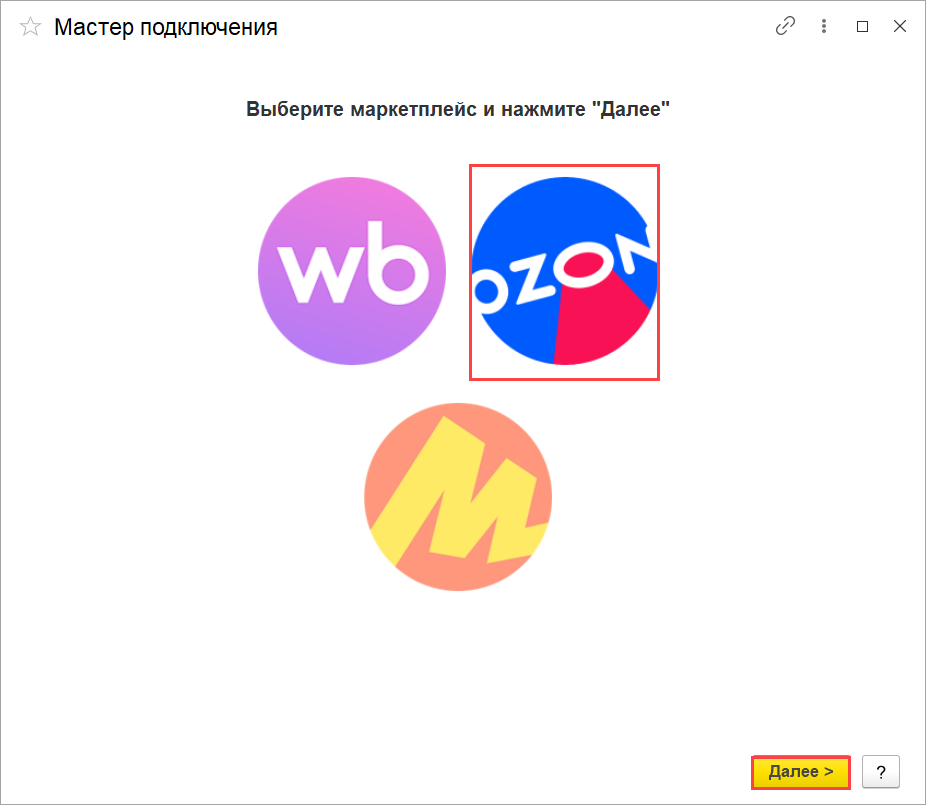 Выбираем "Ozon" и нажимаем "Далее"