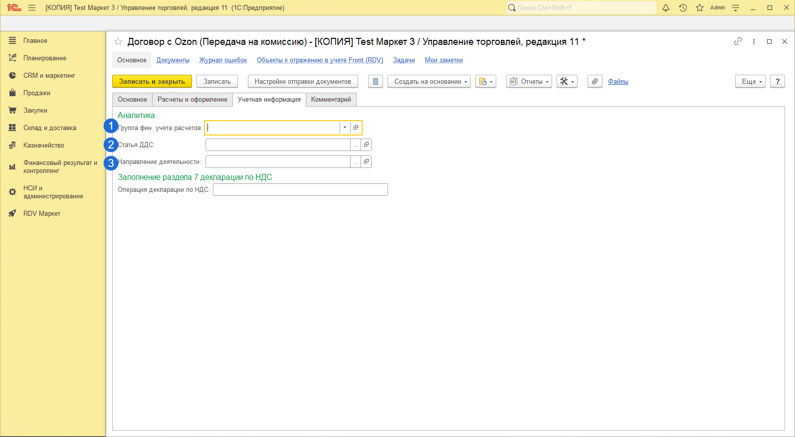 5. Включить Финансовый учет, если загружаете отчеты от маркетплейса.