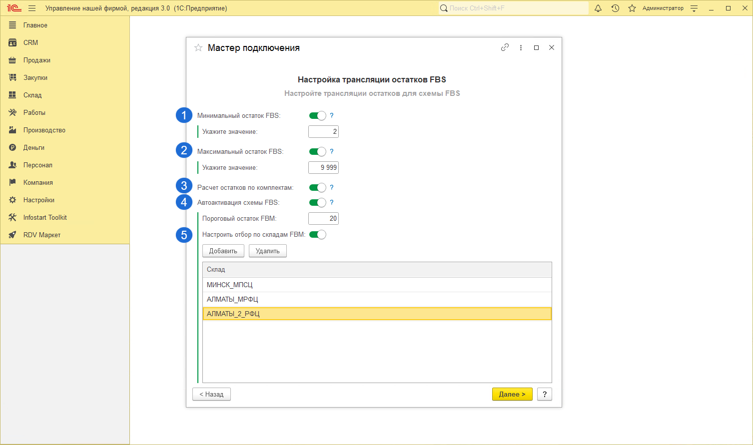 Шаг 5. Настройка трансляции остатков FBS