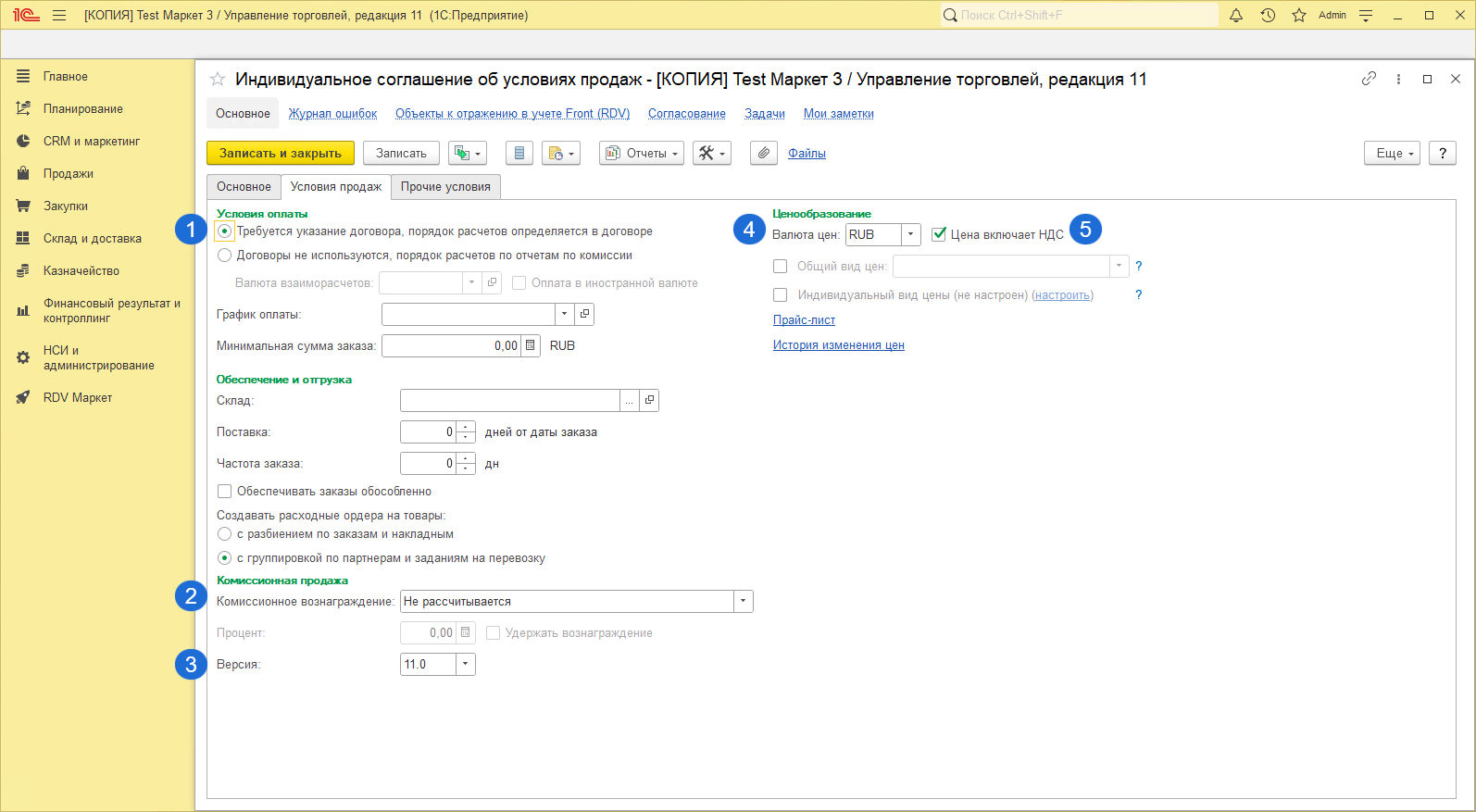 Возможность осуществления комиссионных продаж 11.0 доступна при использовании Соглашений с клиентами.