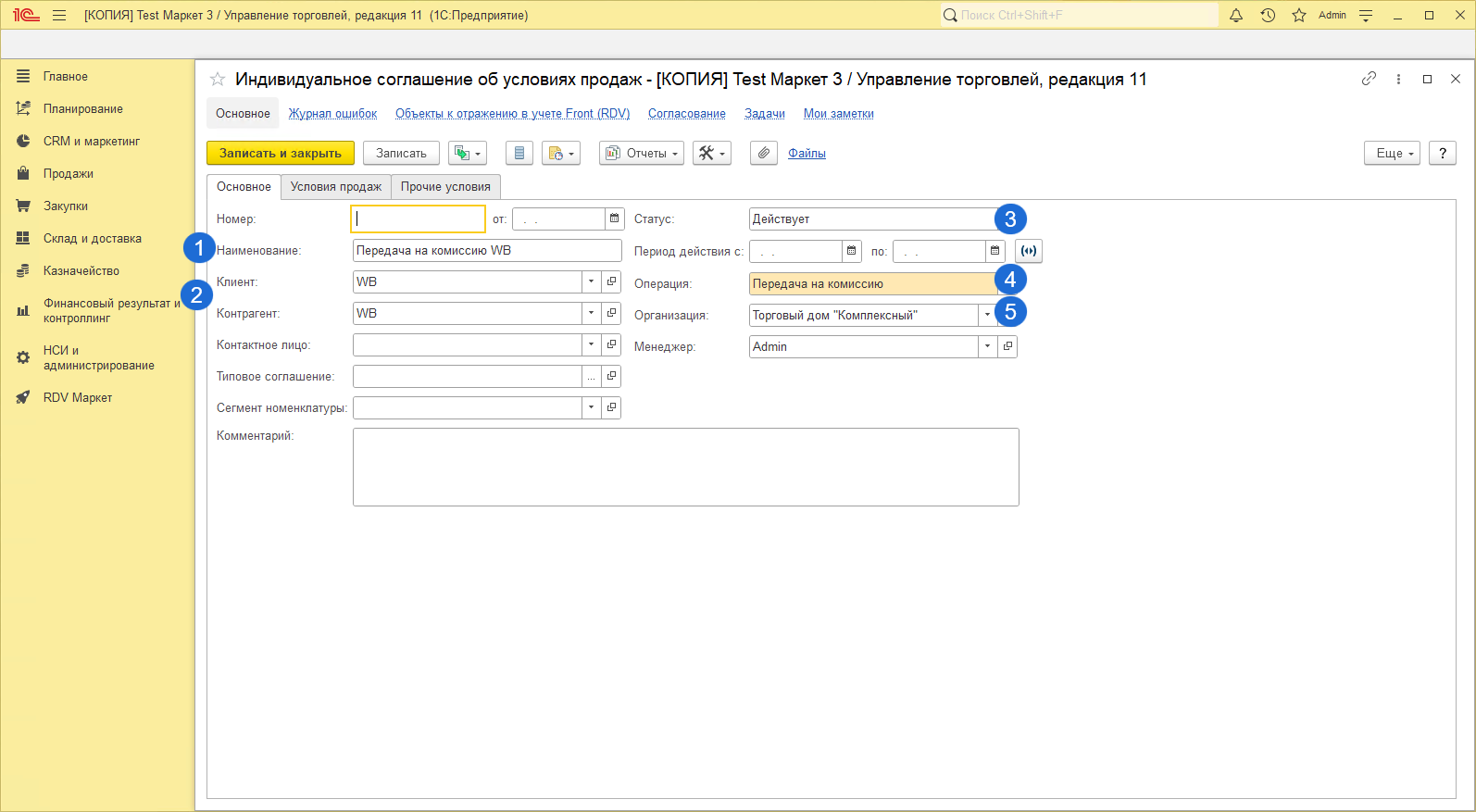 Необходимо выбрать Индивидуальное соглашение. При создании Соглашения необходимо на вкладке "Основное":
