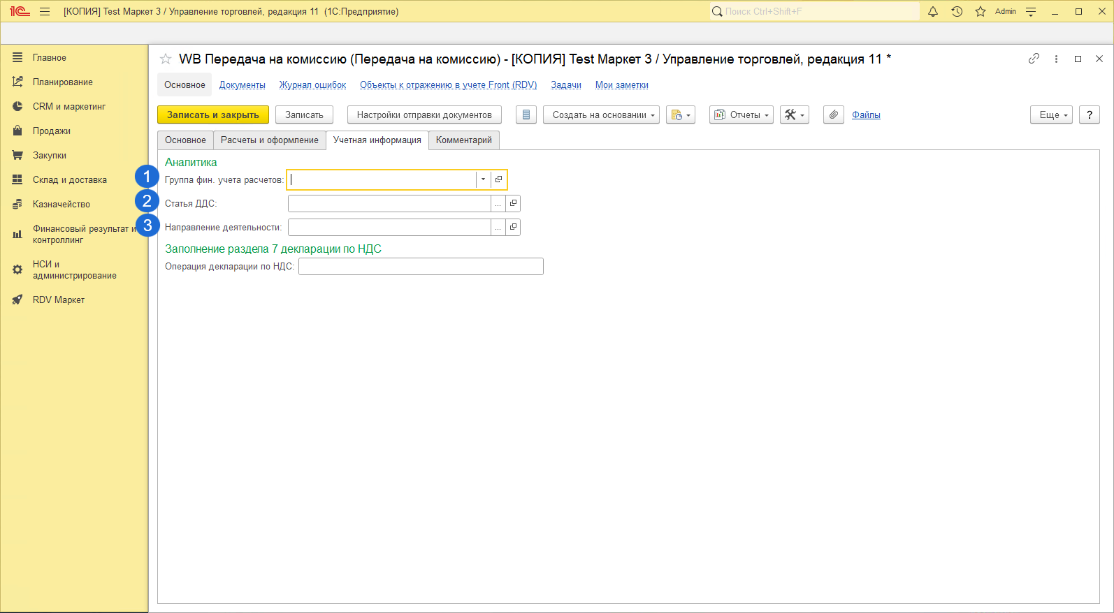 - Включить Финансовый учет, если загружаете отчеты от маркетплейса.