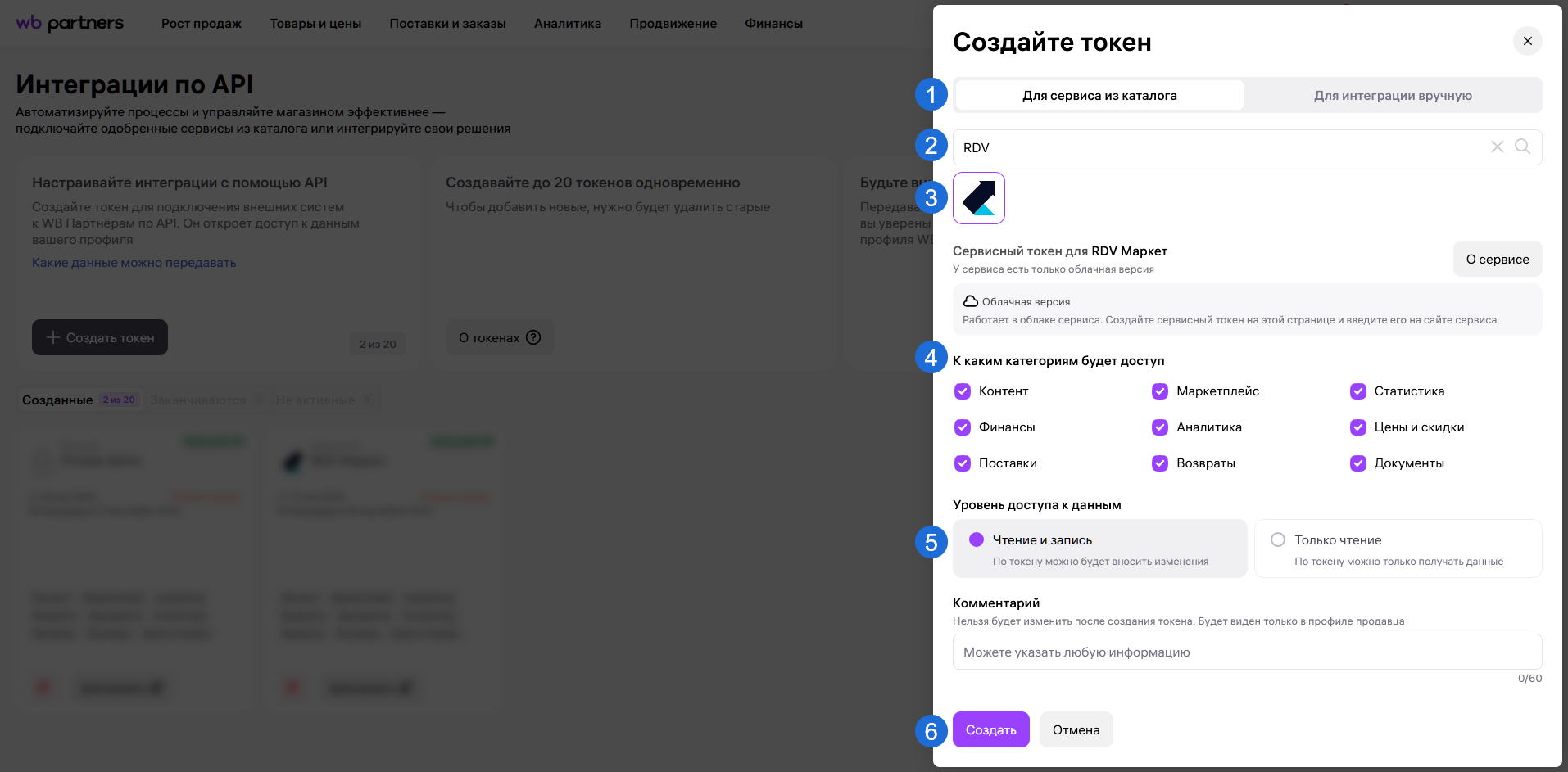 - Указать название сервиса - "RDV Маркет".