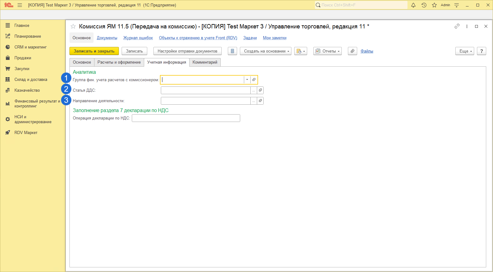 - Выбрать Цель договора "Передача на комиссию".
