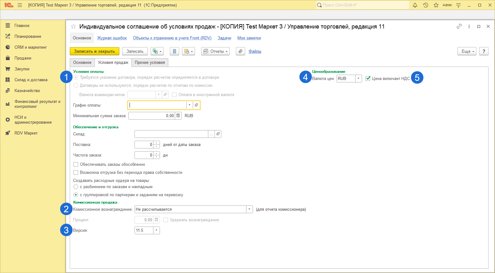 Возможность осуществления комиссионных продаж 11.0 доступна при использовании Соглашений с клиентами.