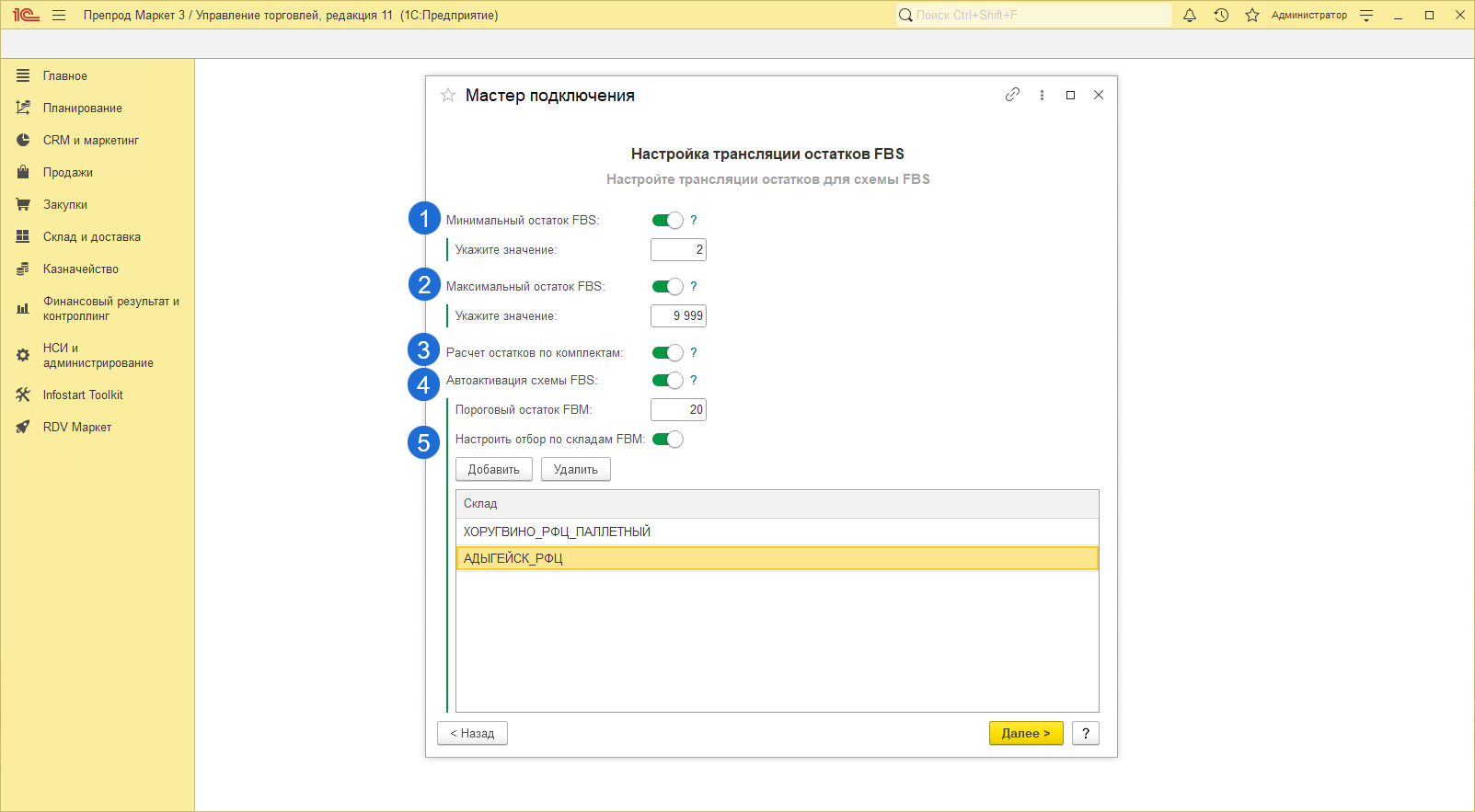 Шаг 5. Настройка трансляции остатков FBS