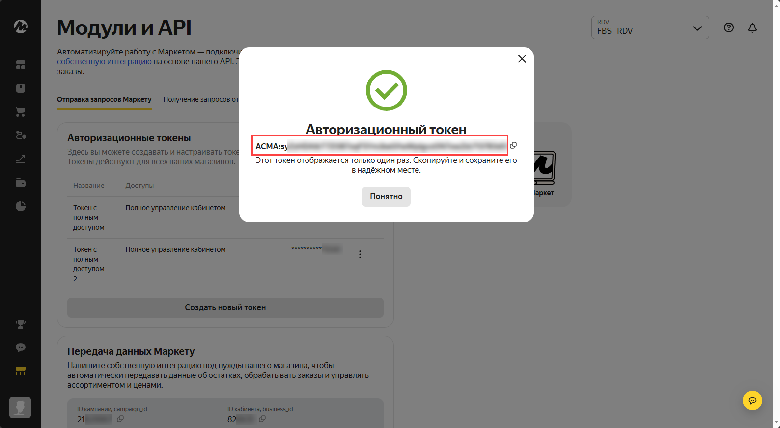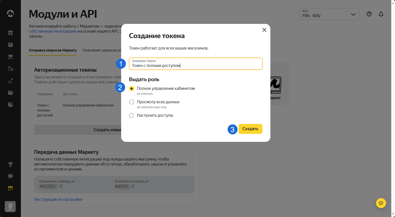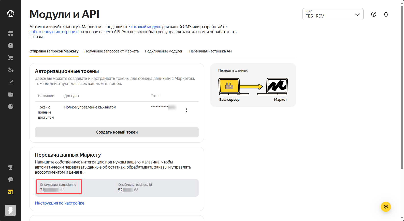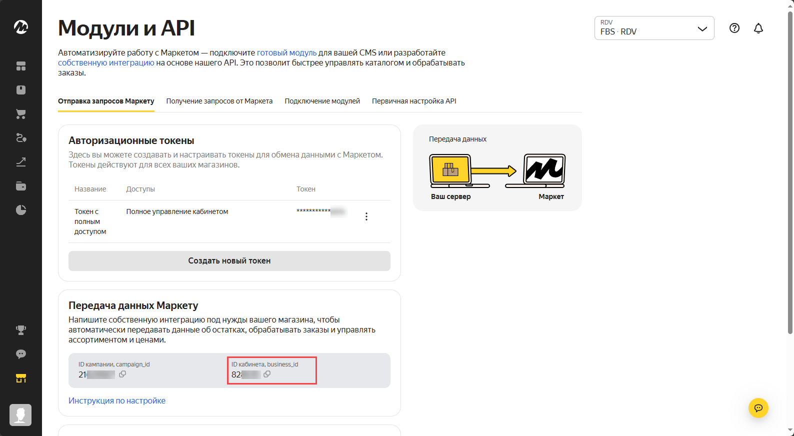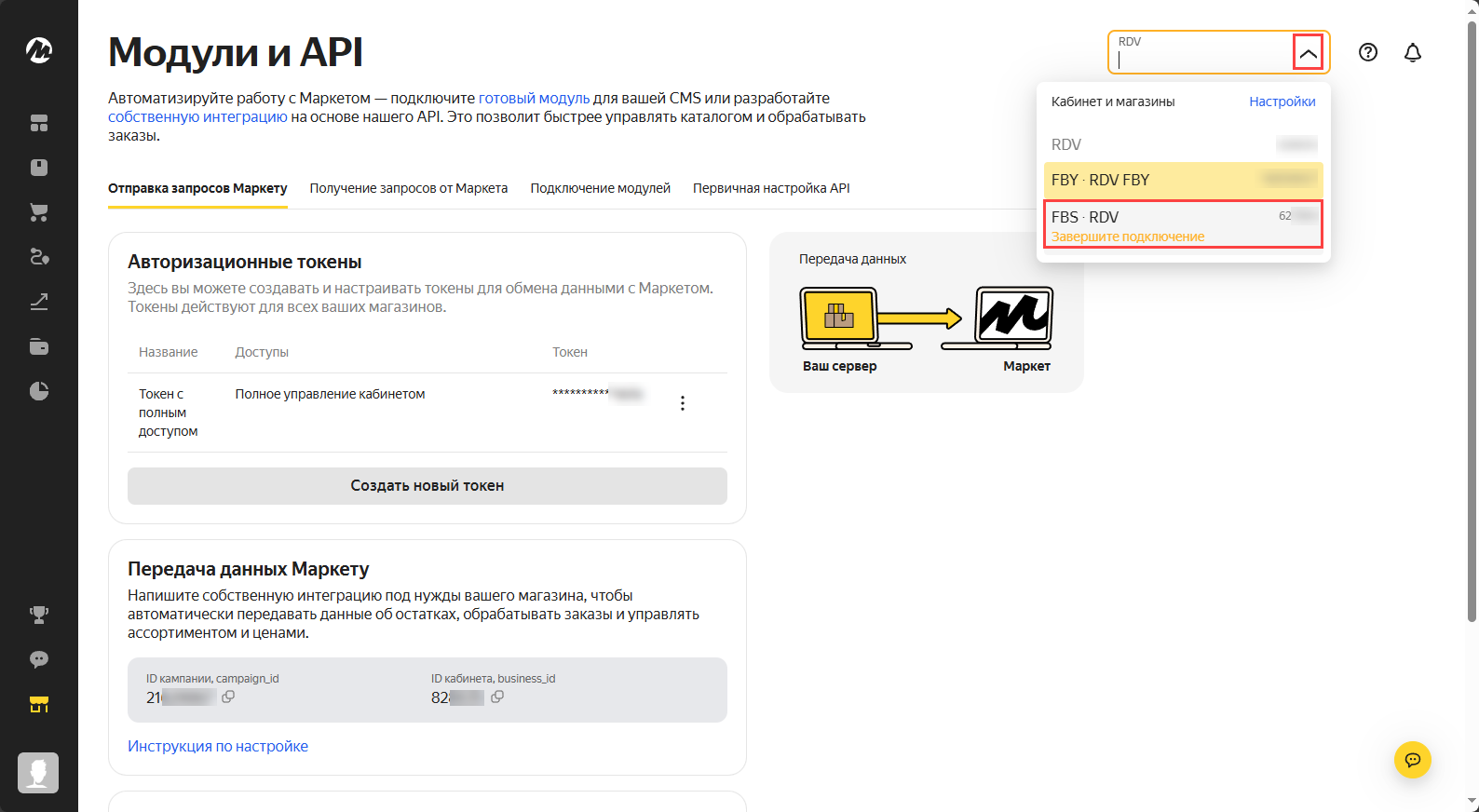 В рамках одного магазина ЯМ возможно использование только одной схемы работы: FBS или FBM. Для каждого склада ЯМ необходимо создание нового подключения к ЛК в модуле RDV Маркет 3.0.