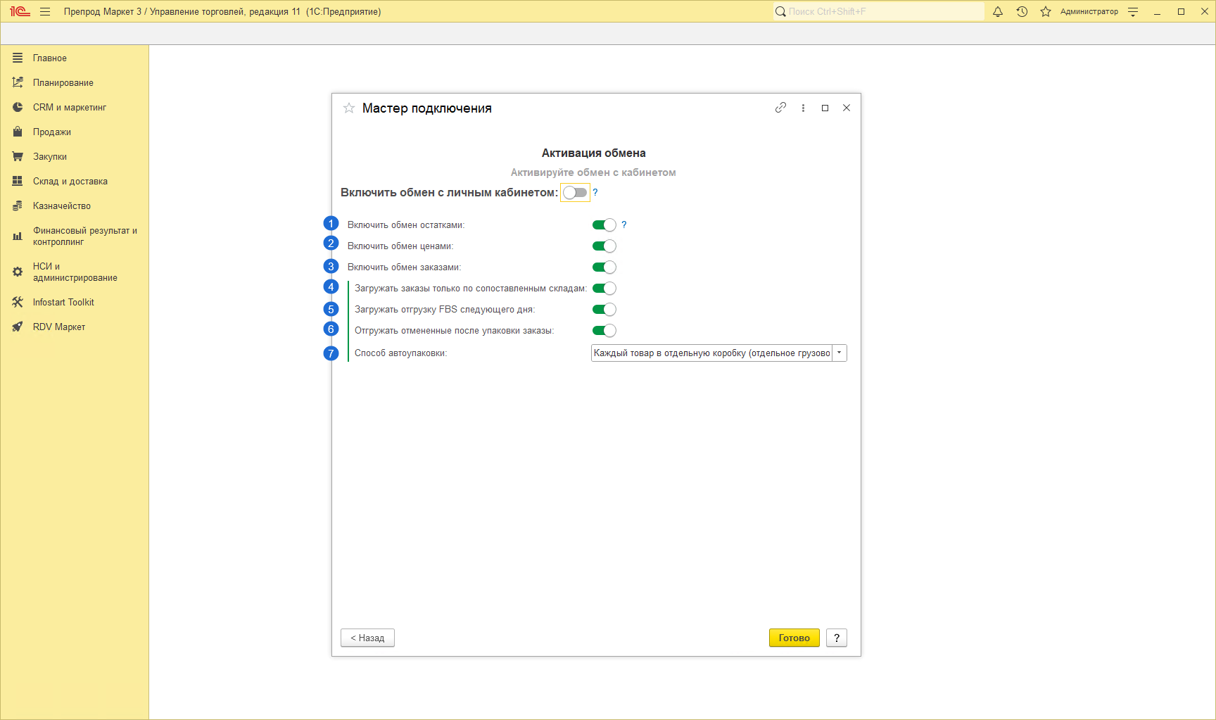 7. Выберите способ автоупаковки заказов маркетплейсов.