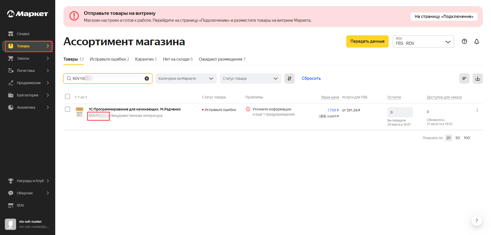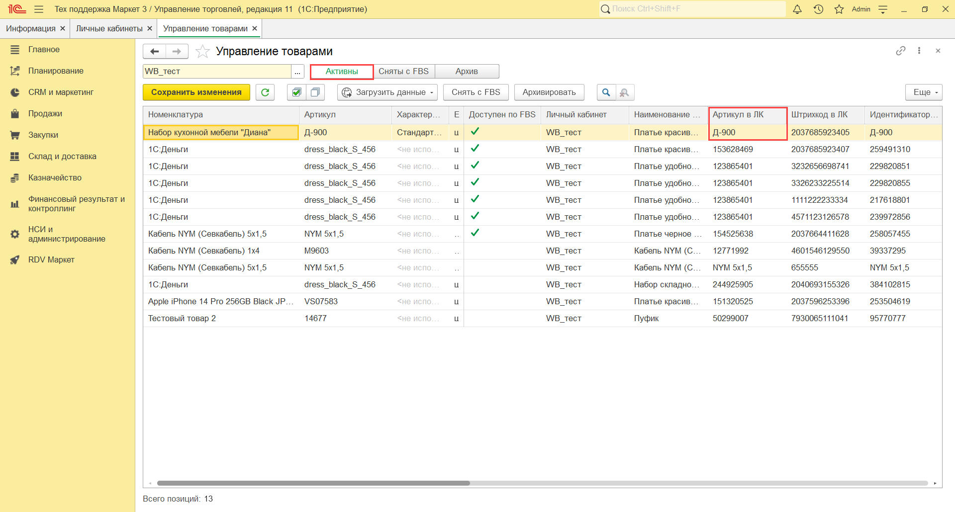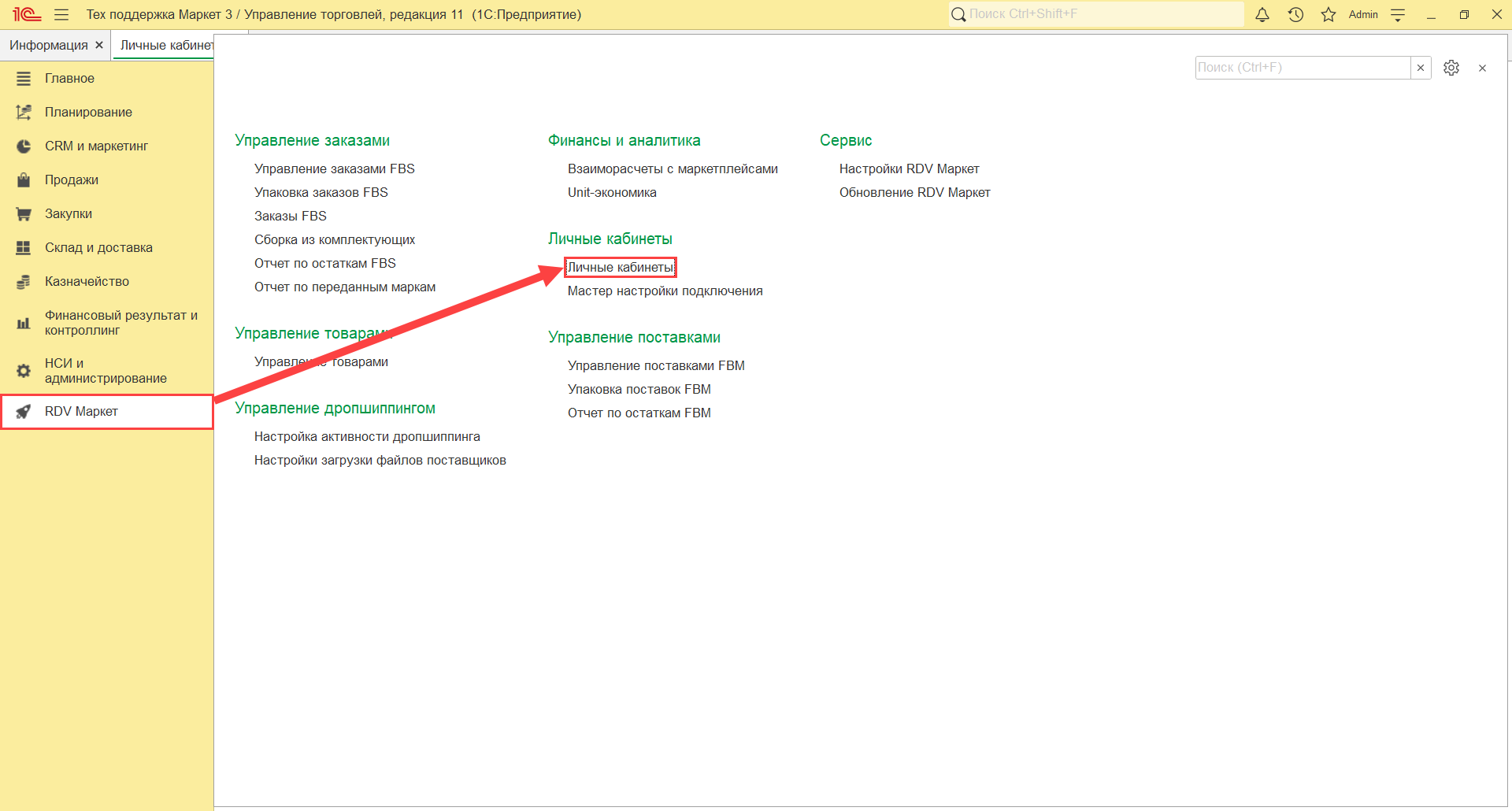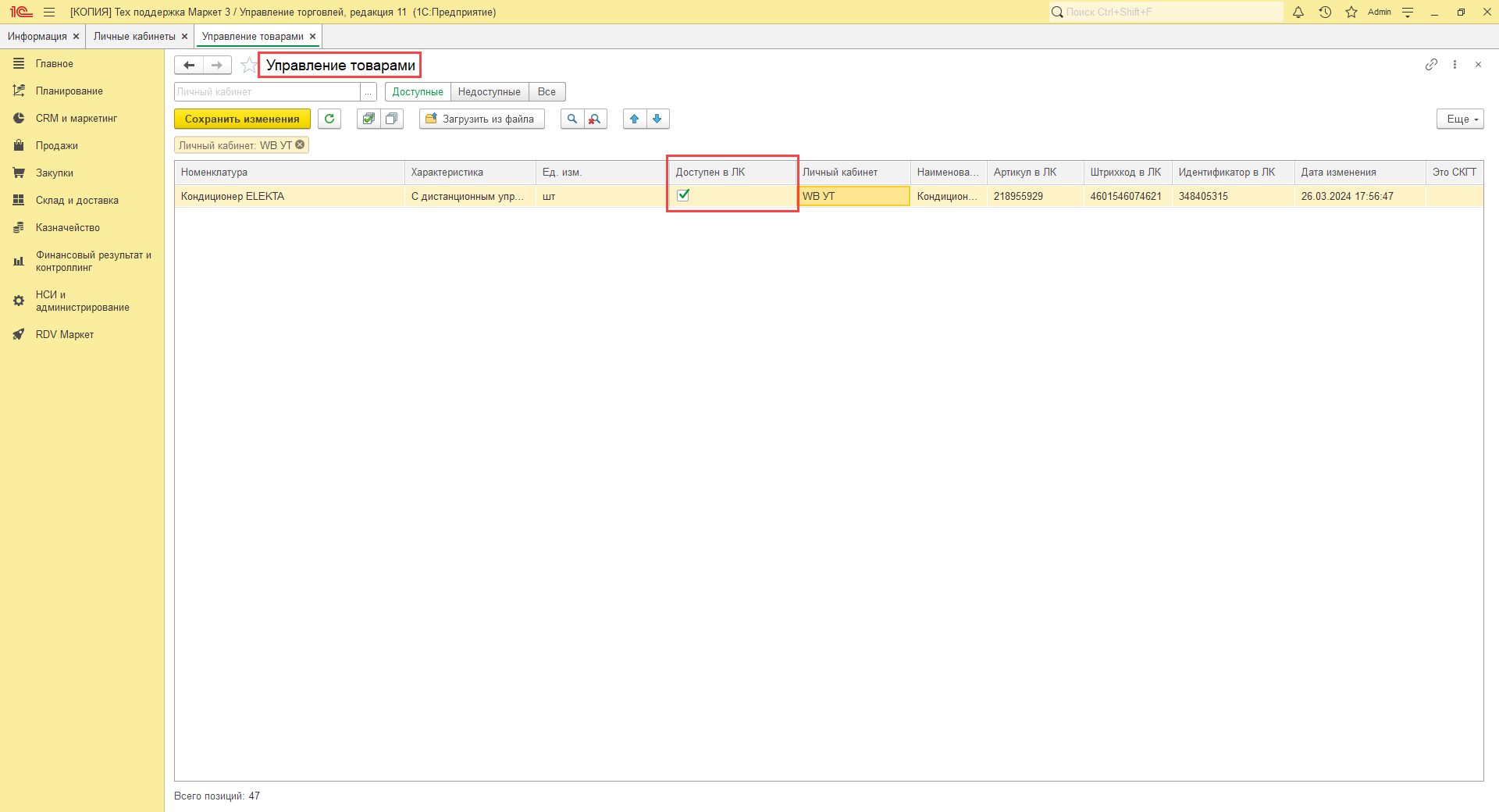 До релиза модуля RDV Маркет 3.0.20. у опубликованных товаров, должен стоять флаг в поле "Доступен в ЛК":
