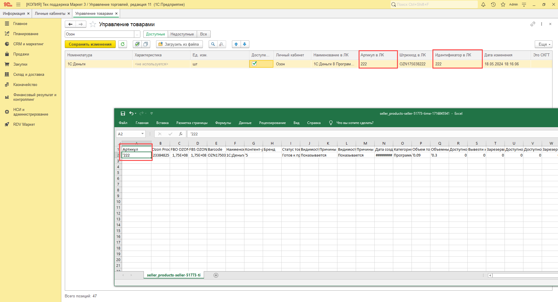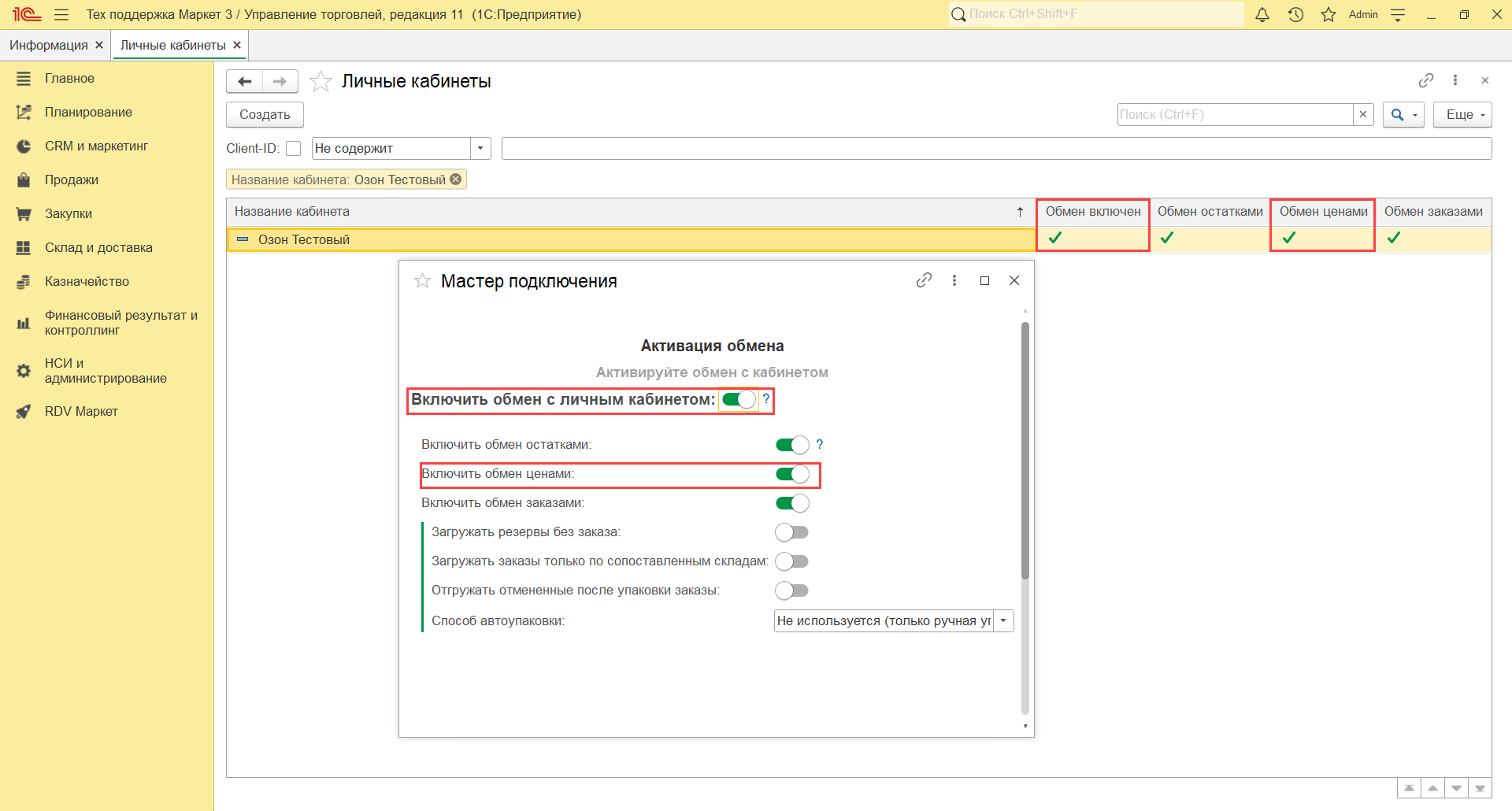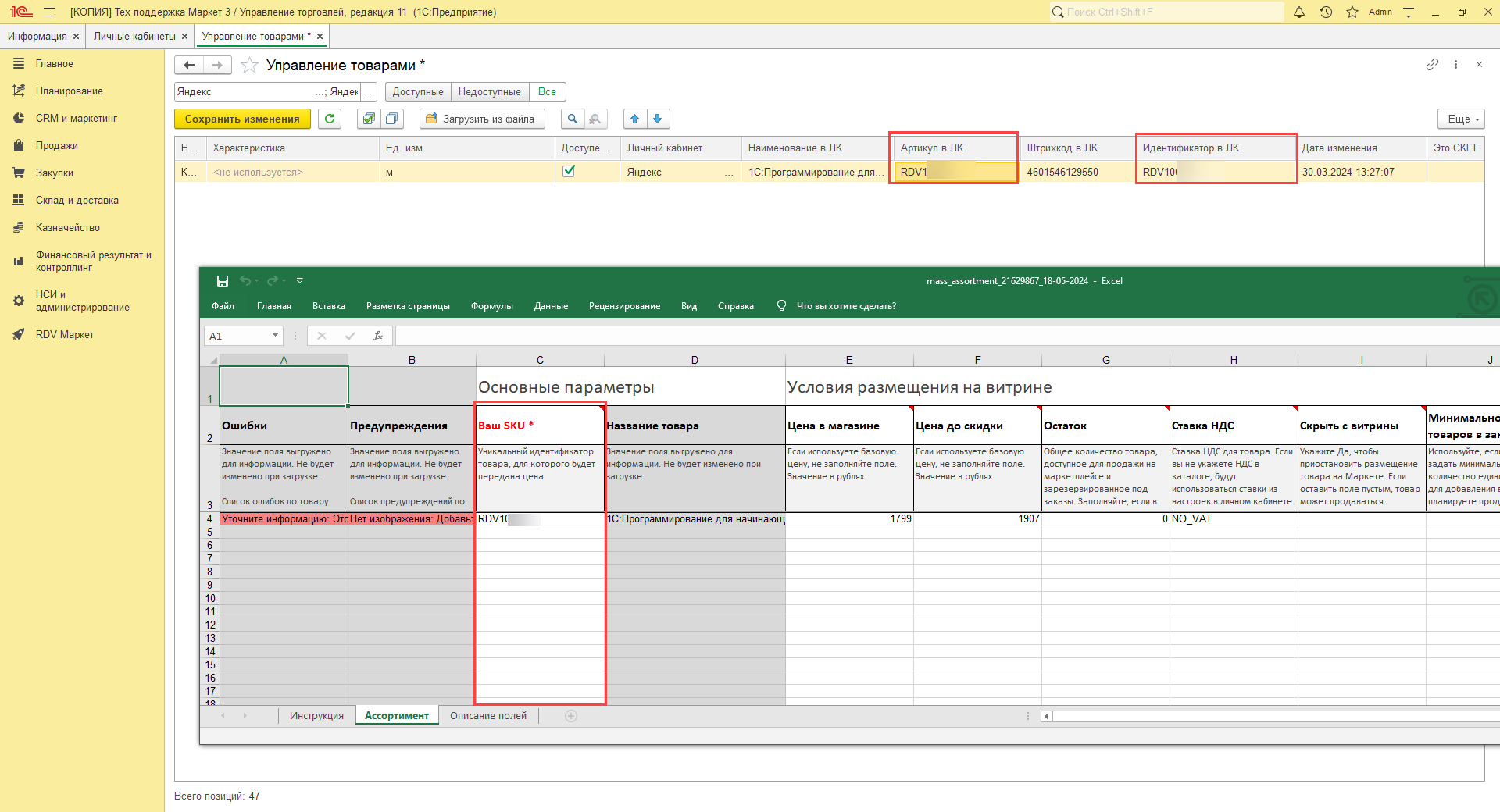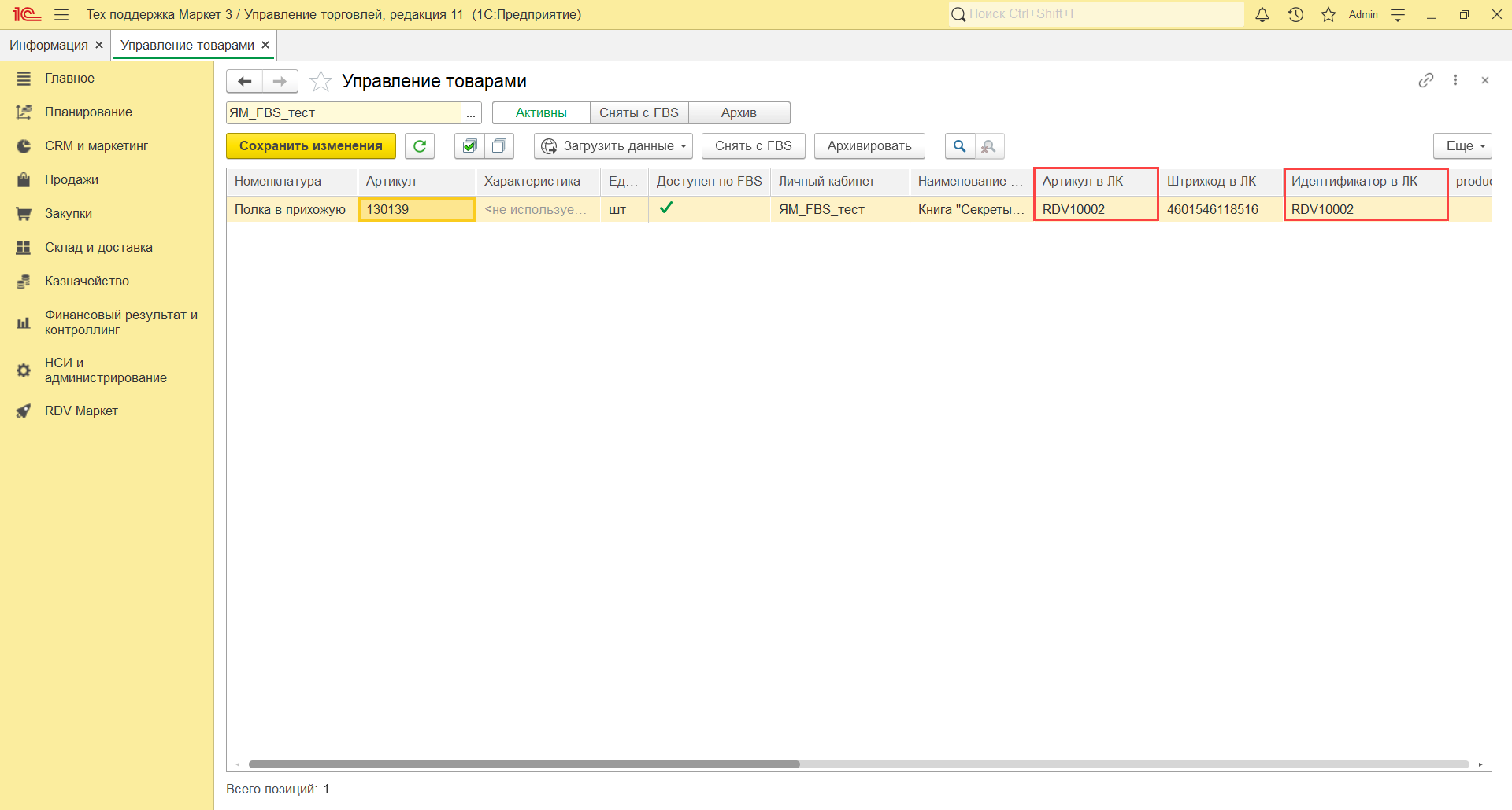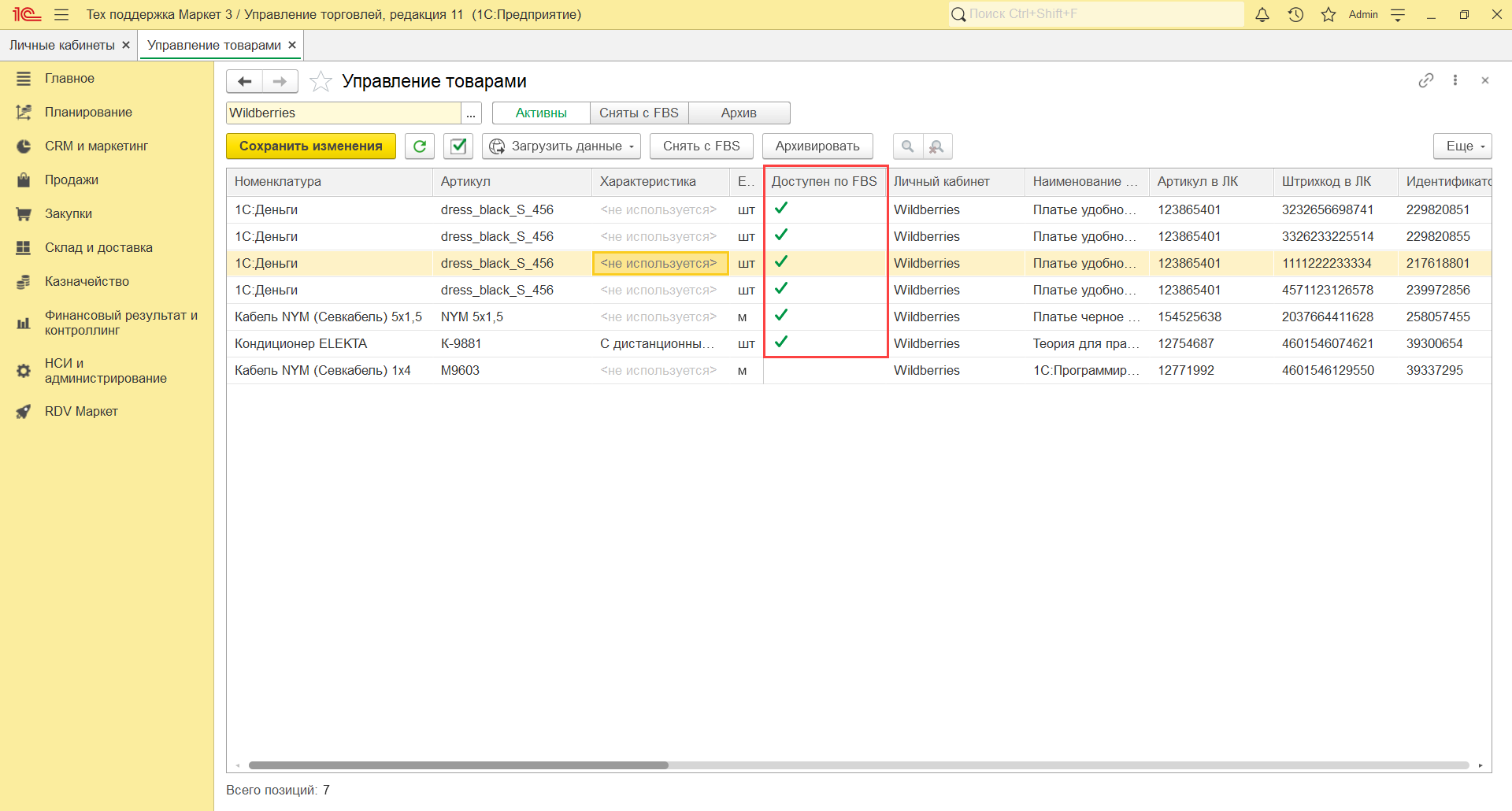 До релиза модуля RDV Маркет 3.0.20. у опубликованных товаров, должен стоять флаг в поле "Доступен в ЛК":