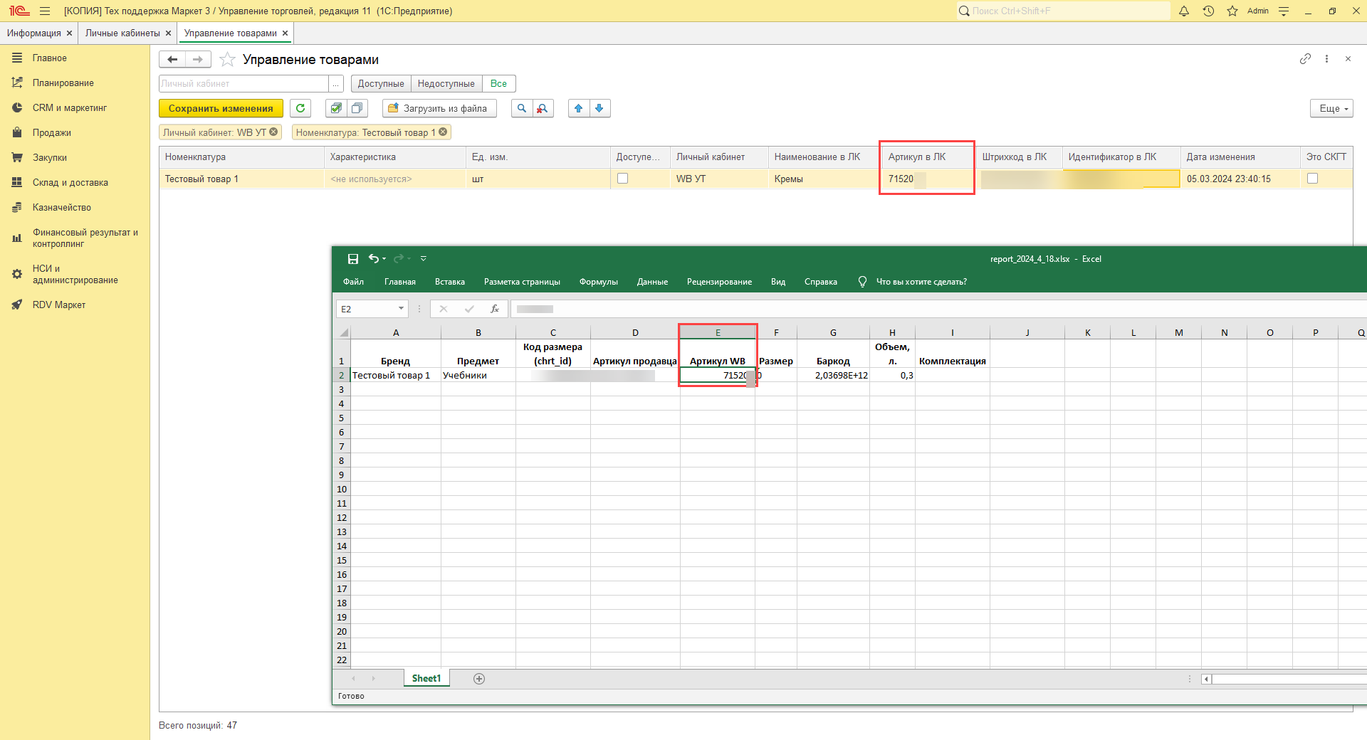 "Артикул в ЛК" соответствует "Артикулу WB" в Личном кабинете ВБ: