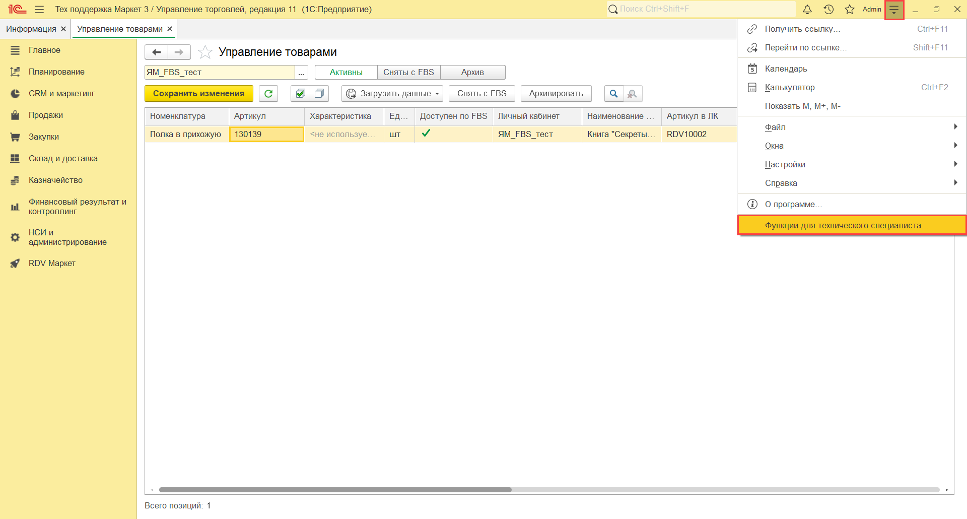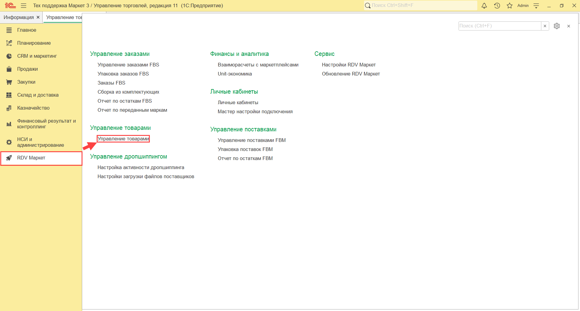 С релиза 3.0.20 видоизменен интерфейс рабочего места "Управление товарами". Подробнее можно ознакомиться на странице Академии RDV: Новое в продукте