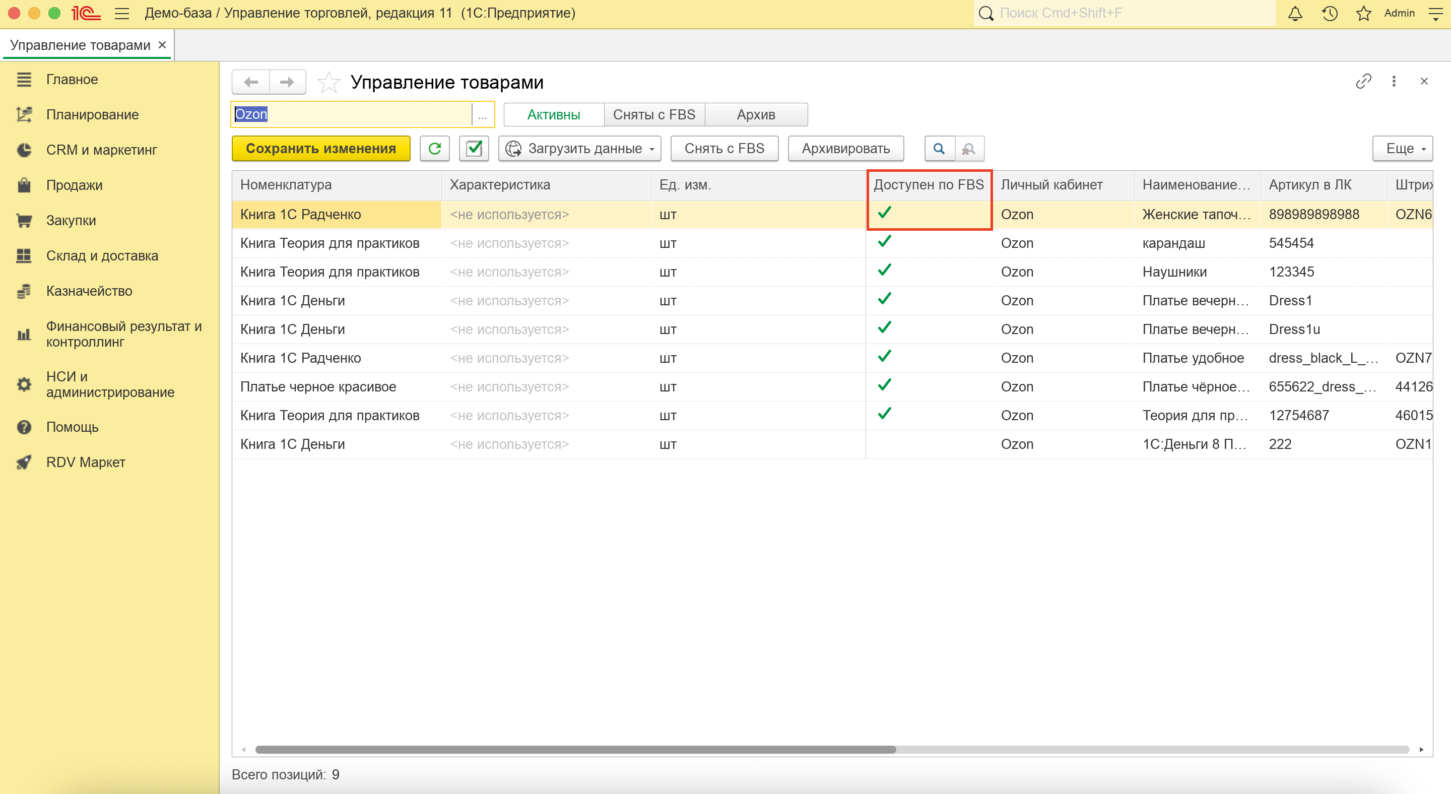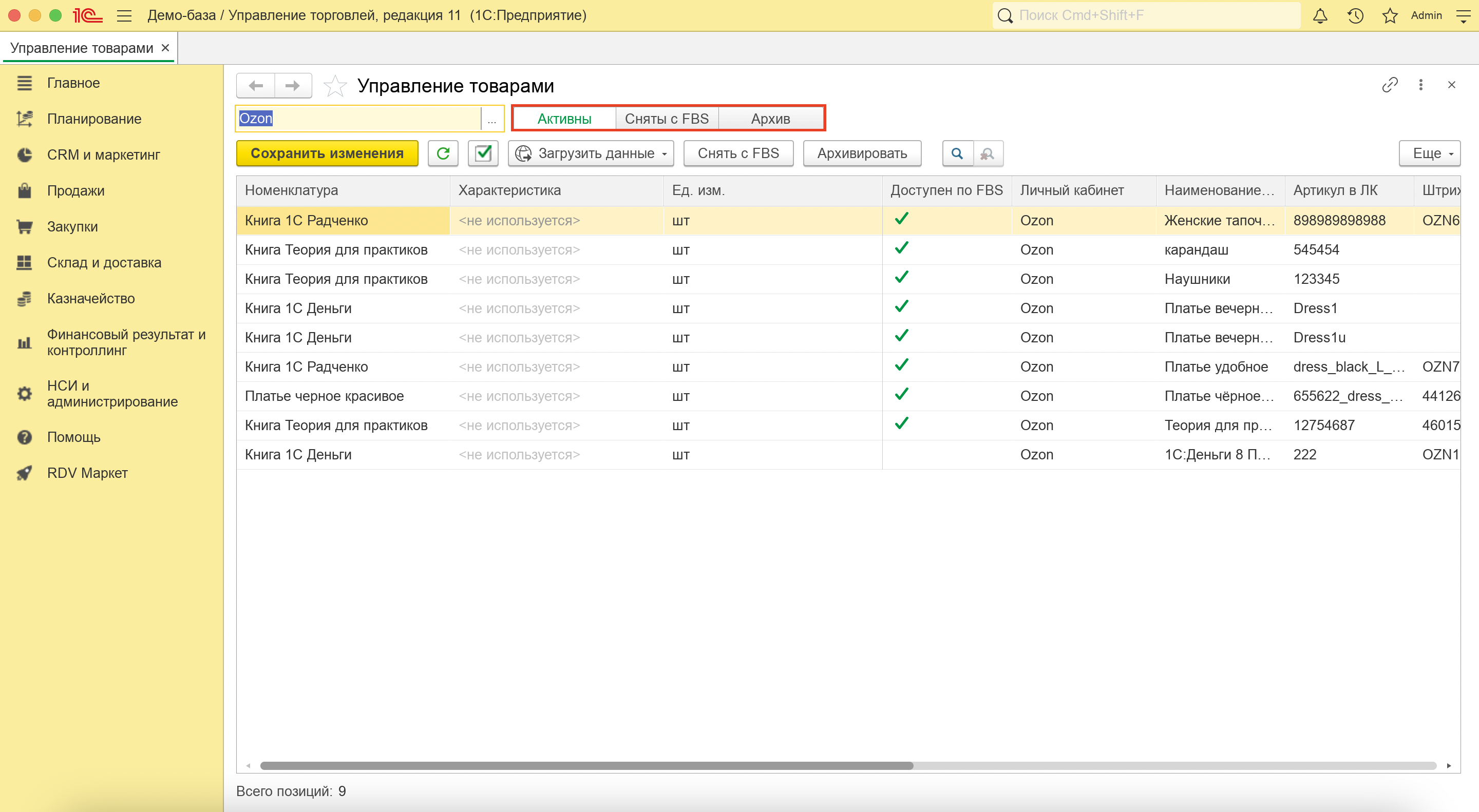 - Активны - товары, которые доступны к продаже по схемам FBS и FBM.