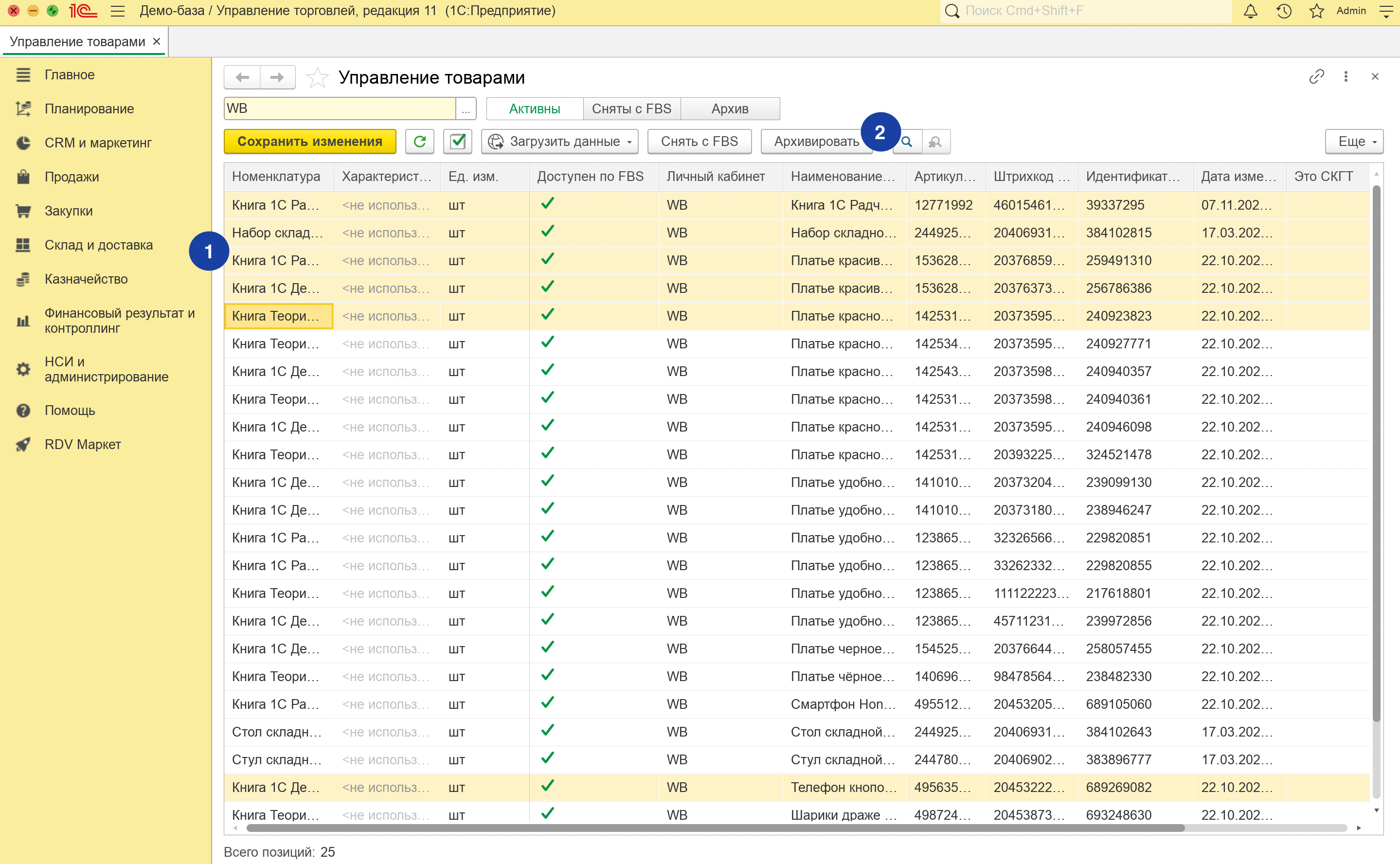 - Активны - товары, которые доступны к продаже по схемам FBS и FBM.