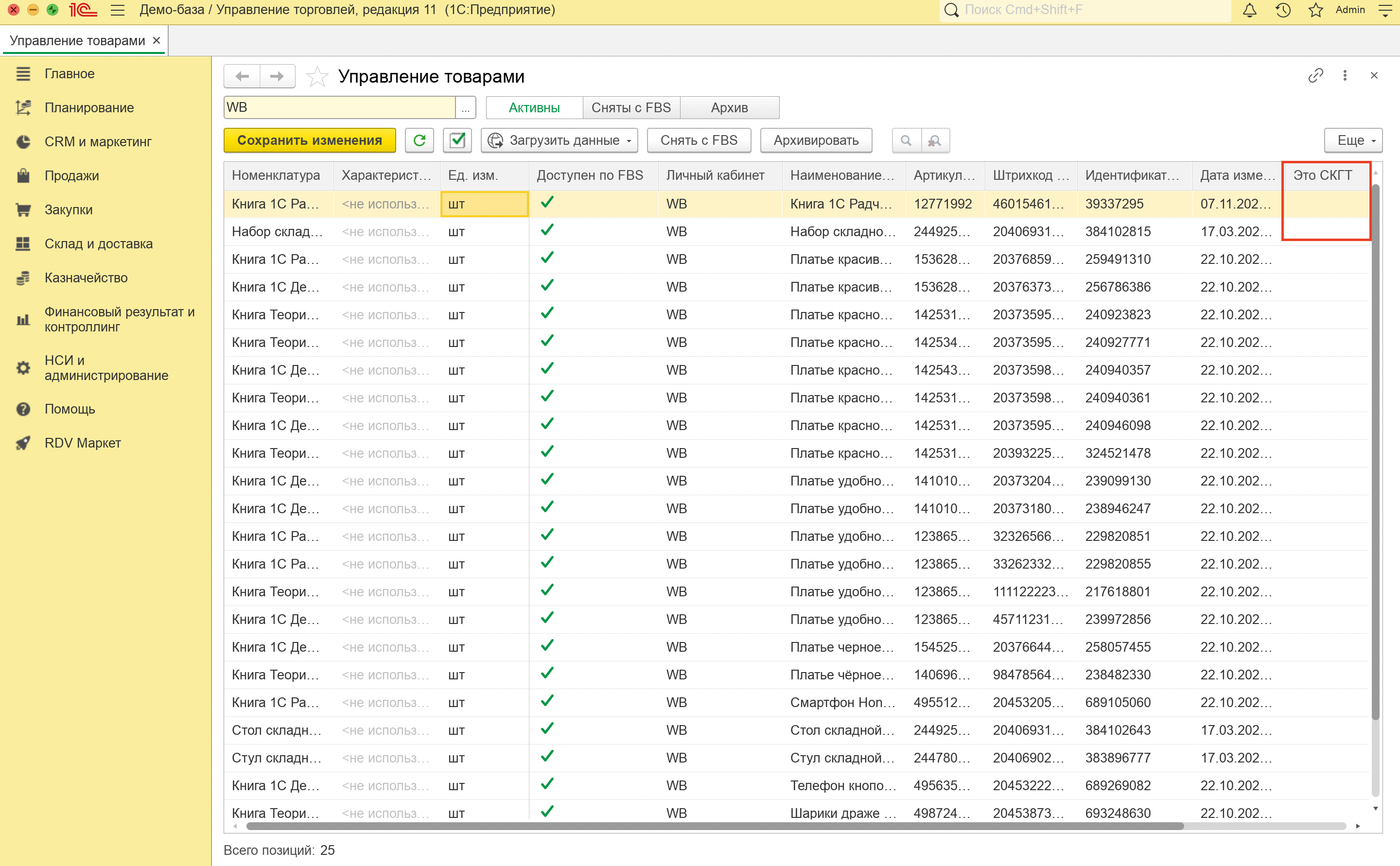 Для товаров маркетплейса Wildberries добавлен признак "Это СКГТ" в Управлении товарами: