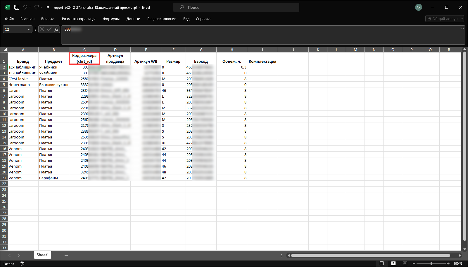 Сопоставление номенклатуры в 1С с карточкой товара в ЛК WB происходит по Штрихкоду (сопоставляется с Баркодом из файла) и по Артикулу (сопоставляется с Артикулом продавца из файла).