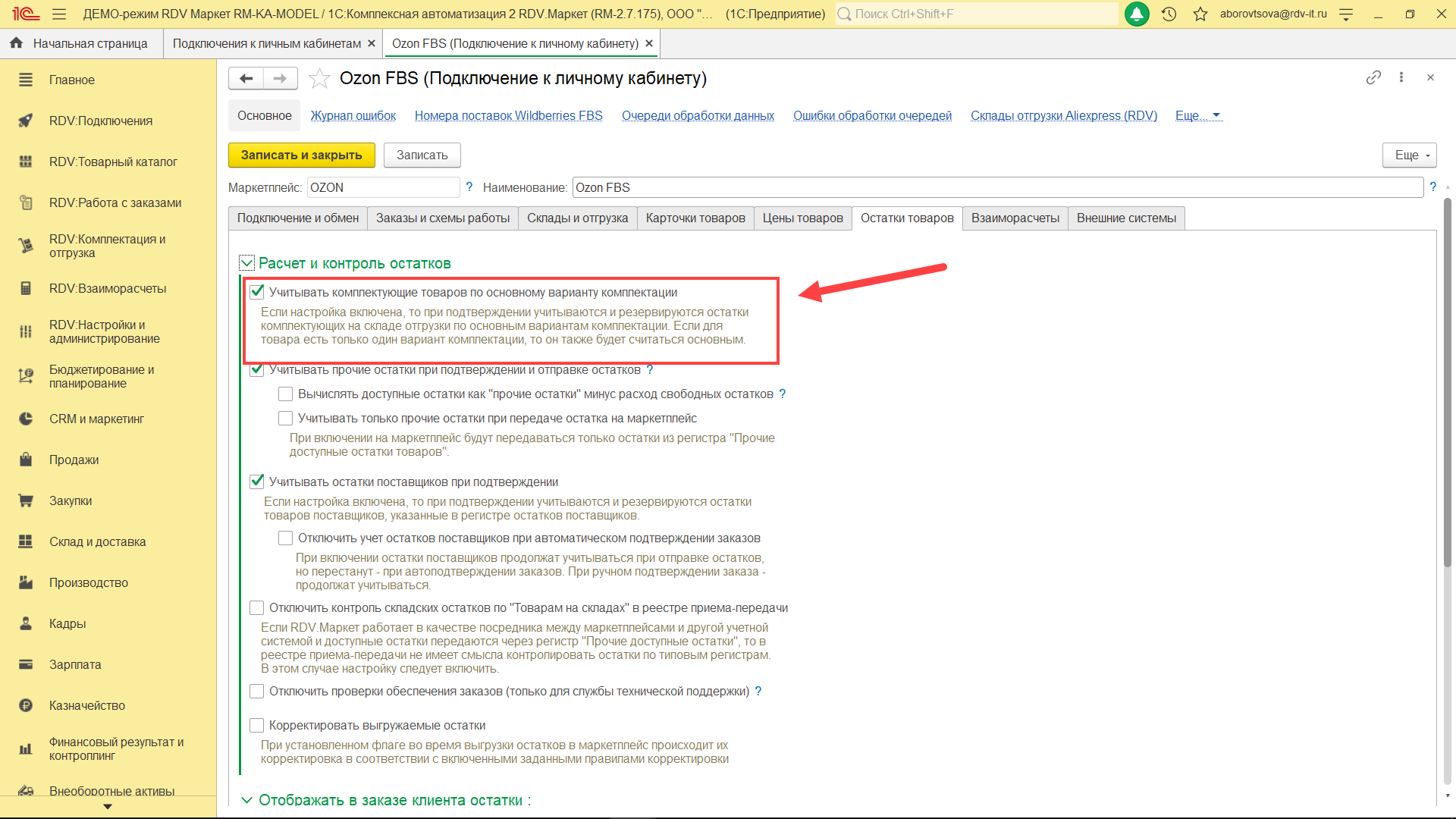 В продукте RDV:Маркет можно формировать комплекты из товаров, по которым отправляются остатки на маркетплейсы. При этом, вы можете отгружать остатки как на часть комплекта, так и на сам комплект.