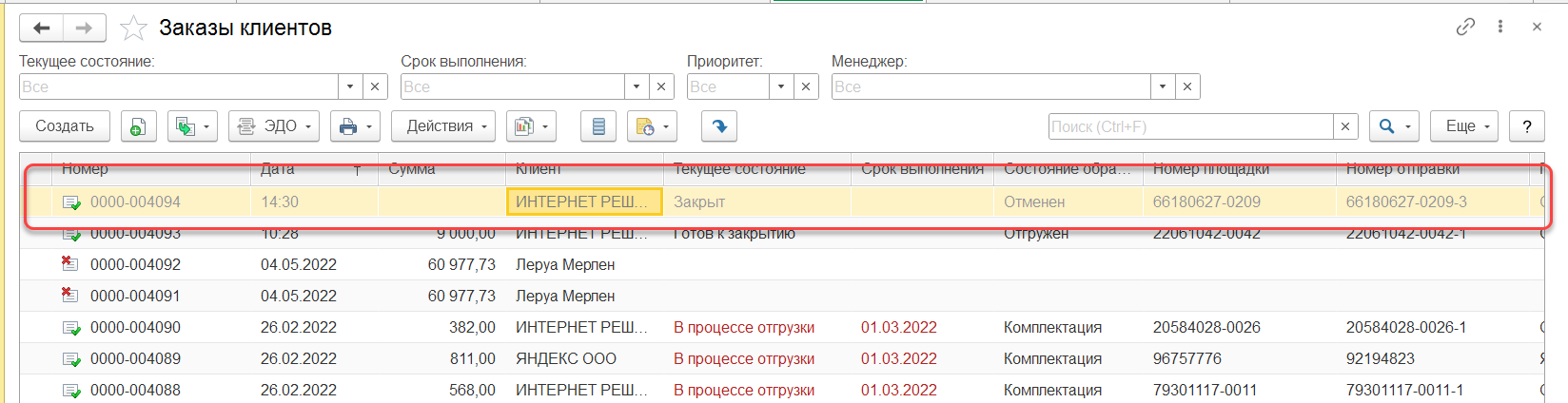 - Отмена заказа