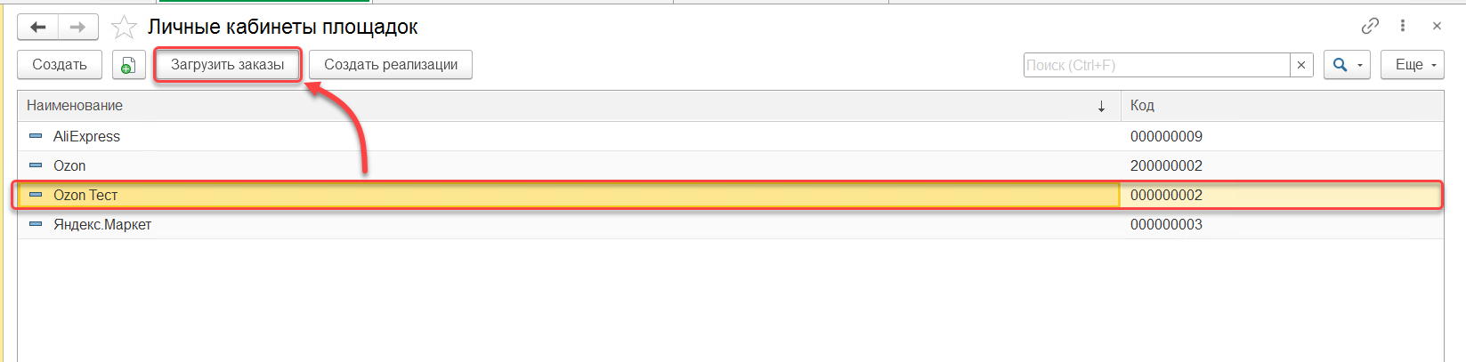 В Коннекторе, в списке личных кабинетов, необходимо выбрать ЛК и нажать кнопку "Загрузить заказы".
