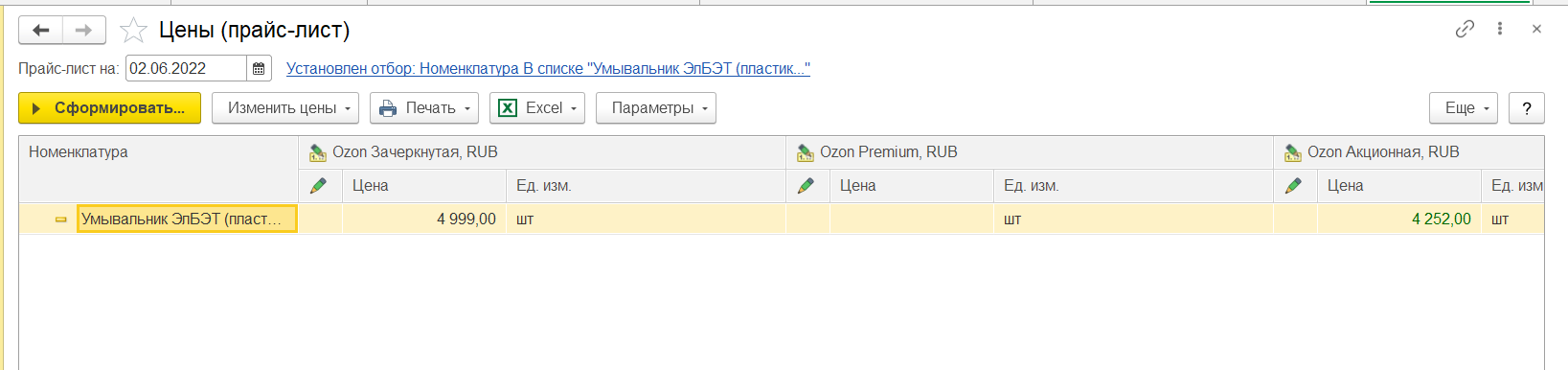 Цены можно проверить сформировав прайс лист по выгруженной номенклатуре. Должны быть установлены цены для видов цен, которые указаны в настройках подключения к ЛК. Необходимо проверить корректность установленных цен.