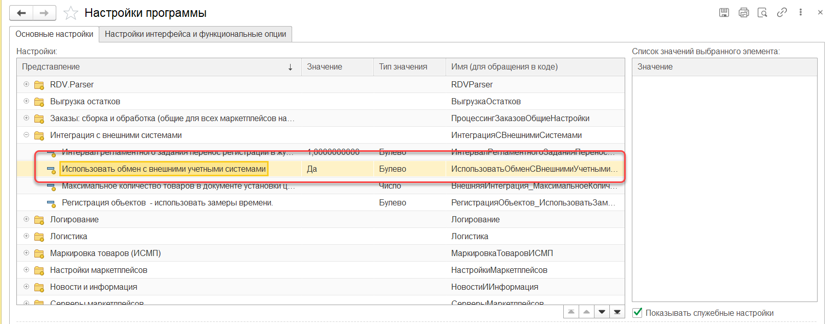 Необходимо в RDV Маркет в настройках программы для настройки "Использовать обмен с внешними системами" установить значение "Да".