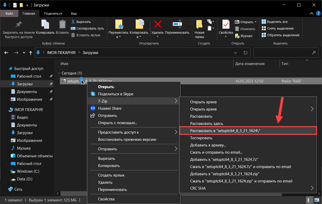 Перейдите в папку, в которую загружен архив. Распакуйте его.