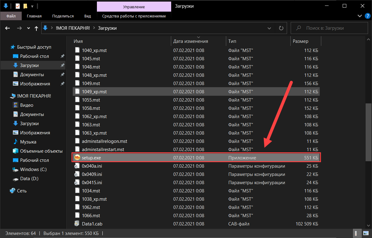 После распаковки архива запустите установочный файл"setup.exe".