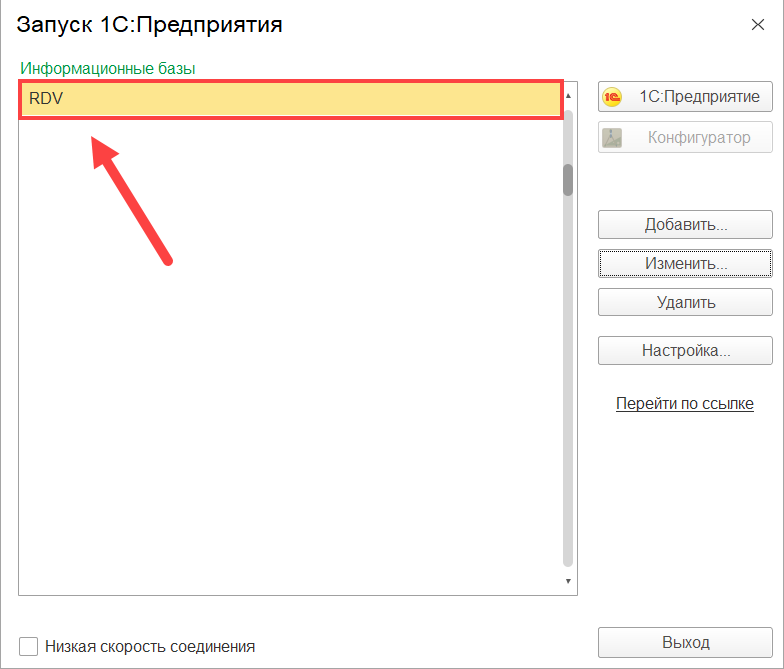 Чтобы добавить информационную базу, запустите программу 1С: