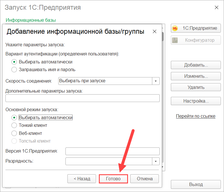 Добавление информационной базы
