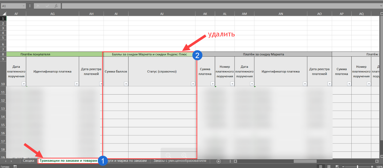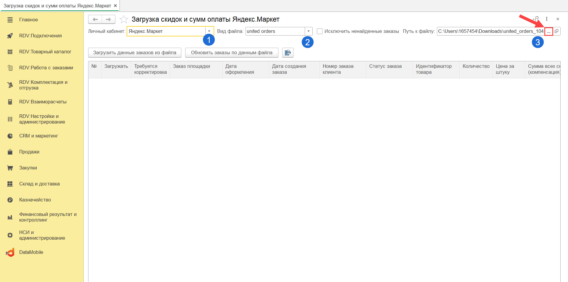 Далее необходимо загрузить файл отчета "Отчет по заказам" из личного кабинета Яндекс.Маркет
