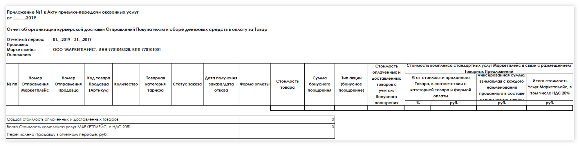 Goods.ru предоставляет продавцу детальный отчет о бонусных рублях и счет-фактуру + образец счета-фактуры на реализацию по программе лояльности в конце отчётного периода (месяца).